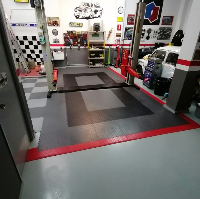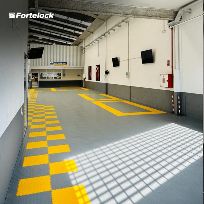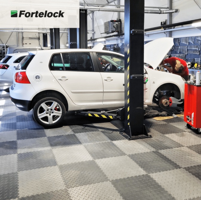 300 m2 podlahy ve španělském autoservisu pokrývají dlaždice Fortelock Industry.