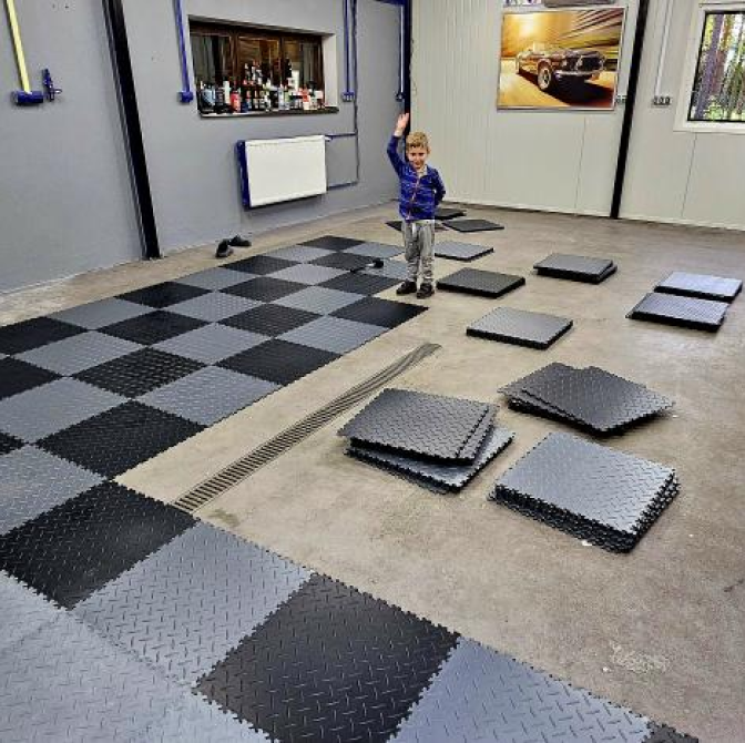 Zákazník z Poľska, ktorý sa rozhodol do svojej autodetailingovej dielne položiť dlaždice Fortelock Industry.